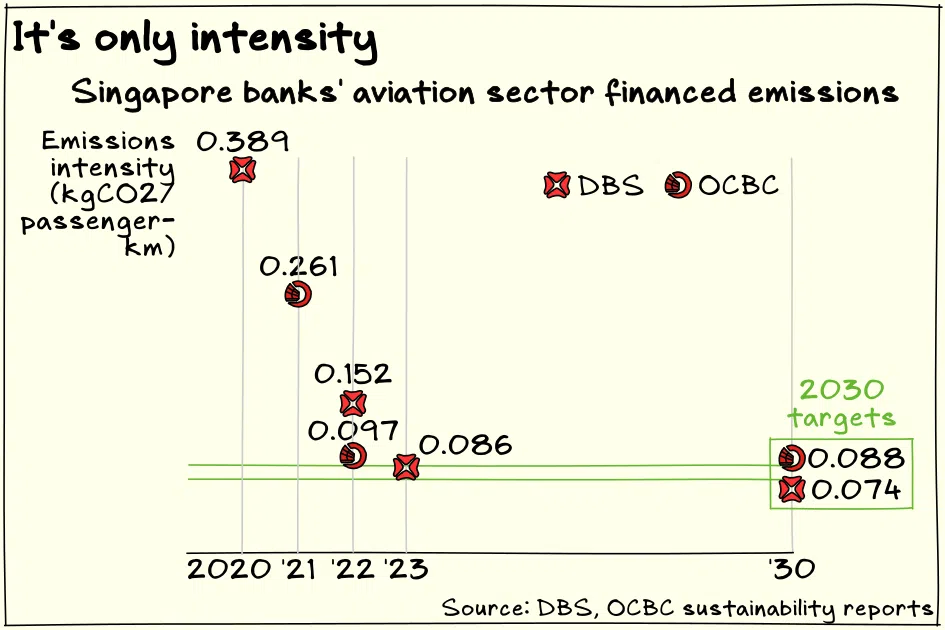 Singapore banks are making headway in lowering the emissions intensity of activities they finance in the aviation, power and real estate sectors but are facing challenges in timely reporting.